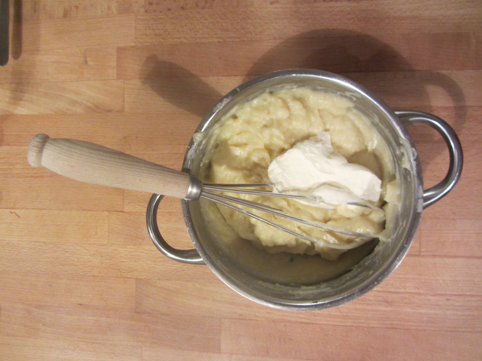 Beat the mixture in the bowl til it's nice and smooth, it's going to be a bit lumpy at first but just keep at it... it's going to be fine.